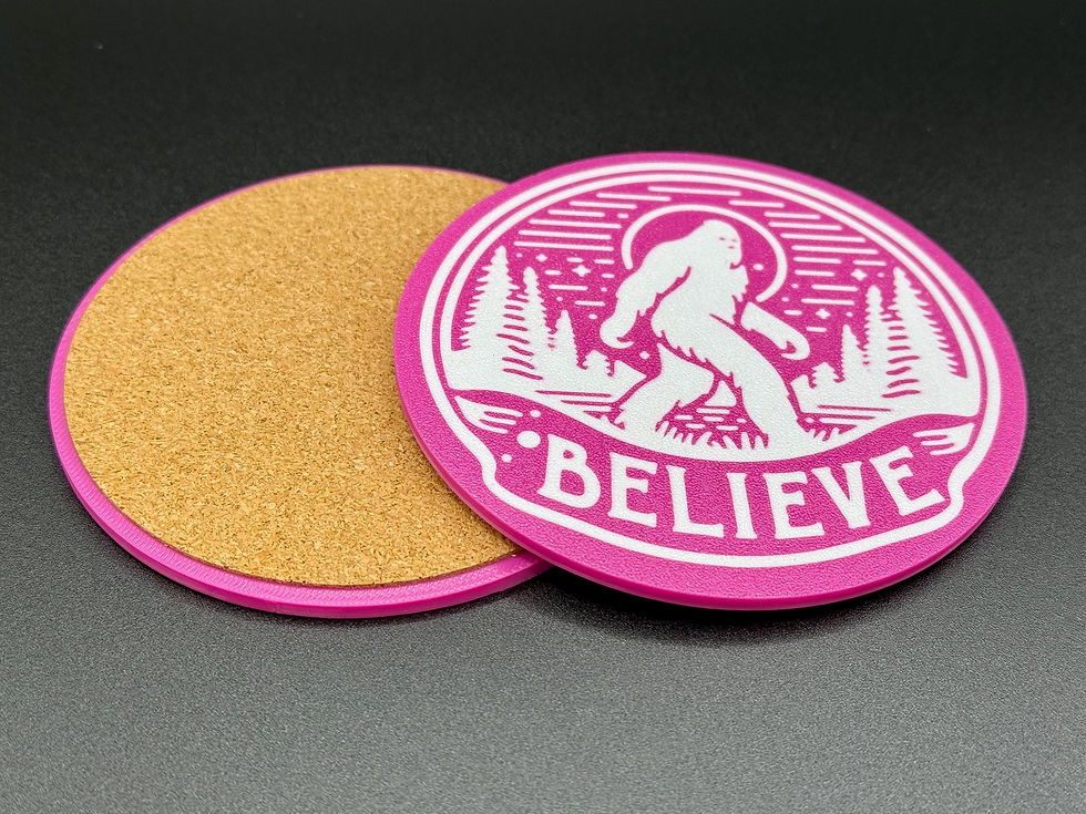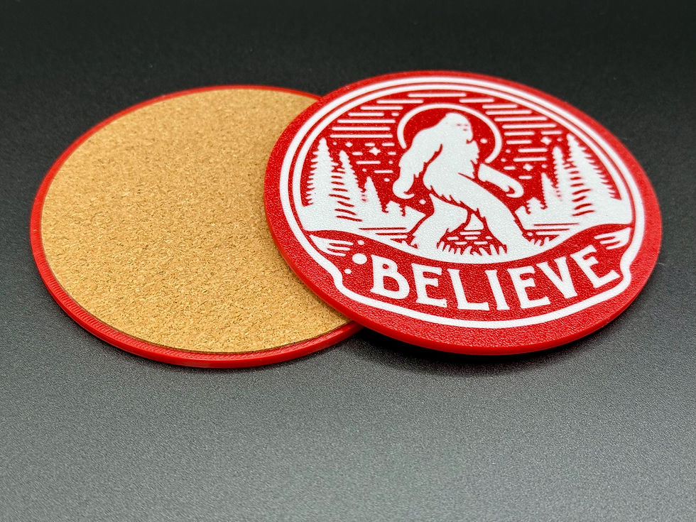 Bigfoot Drink Coasters - Set of 4 - 3D Printed with Cork Backing - Sasquatch